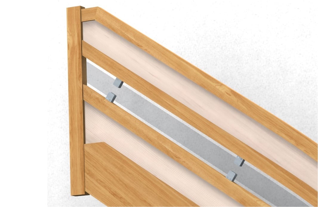Thus, numerous constructions with balustrading infills can be created with little effort. Examples would be a completely grooved infill, an infill with glass clamps, an infill grooved in the steps or a construction with lateral glass clamps. There are no limits to the stair designer.
